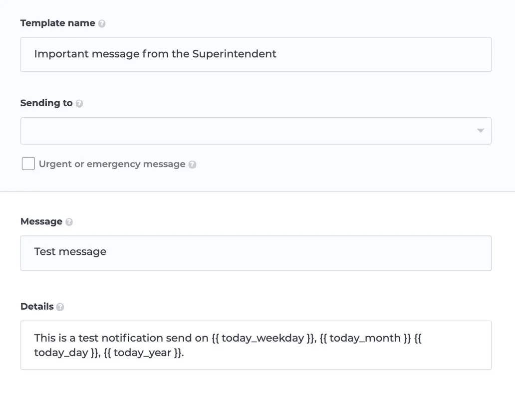 Merge tags allow you to create message templates that plug in the current date/time information.