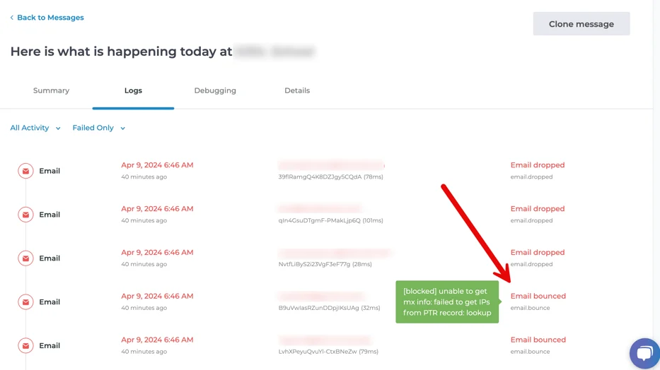 When you send a communication from SchoolNow, you can review a report of the message to understand what happened to email messages when they were sent or attempted to be sent.